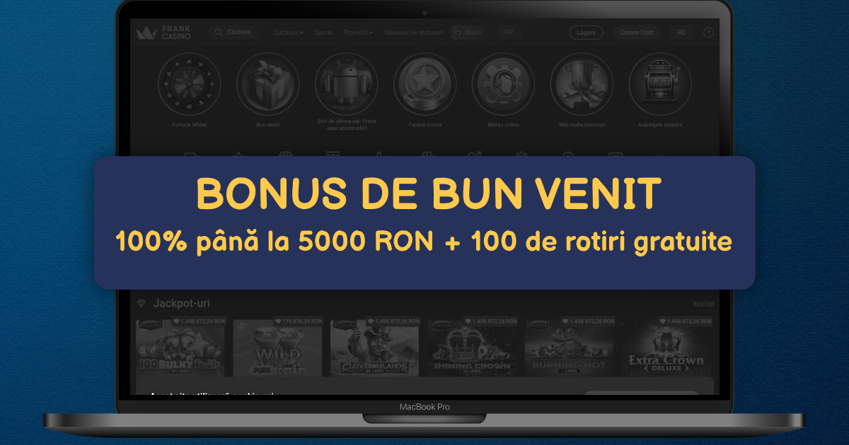 Frank Casino te întâmpină în România cu o platformă modernă și sigură. Pachetul de bun venit este 100% până la 2 000 RON plus 150 de rotiri gratuite. Cerințele de rulaj sunt 35x pentru bonus și 30x pentru câștigurile din rotiri. Operăm legal cu licență clasa 1 ONJN, sub supravegherea Oficiului Național pentru Jocuri de Noroc. Găsești sloturi online, ruletă live, blackjack, bacara și jocuri cu dealer. Titlurile sunt oferite de NetEnt, Pragmatic Play și Evolution. Platforma funcționează impecabil pe mobil, în browser și prin aplicație. Depunerile sunt rapide prin card bancar, portofele electronice și transfer bancar. Retragerile se procesează prioritar în 24 de ore după verificarea KYC. Beneficiezi de plăți securizate și autentificare în doi pași. Tabelul de limite este clar, cu depunere minimă 20 RON și retragere minimă 50 RON. Jucătorii din România primesc oferte regulate, inclusiv cashback săptămânal și turnee. Asistența este disponibilă 24/7 în limba română. Alege Frank Casino pentru o experiență echilibrată, cu jocuri diverse și termeni transparenți.